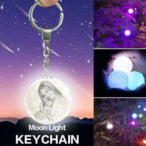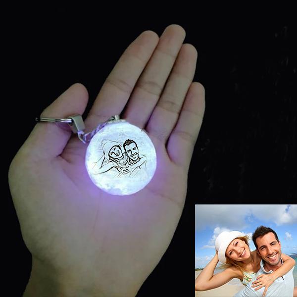 Custom Photo Keychain 3D Printed Moon Lamp Keyring Multicolor Gifts for Her