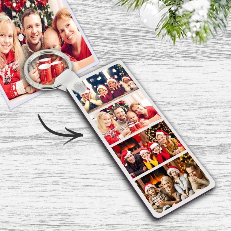 Custom photo Keyring With Four Photos And Text On The Back Personalised Picture Keyring