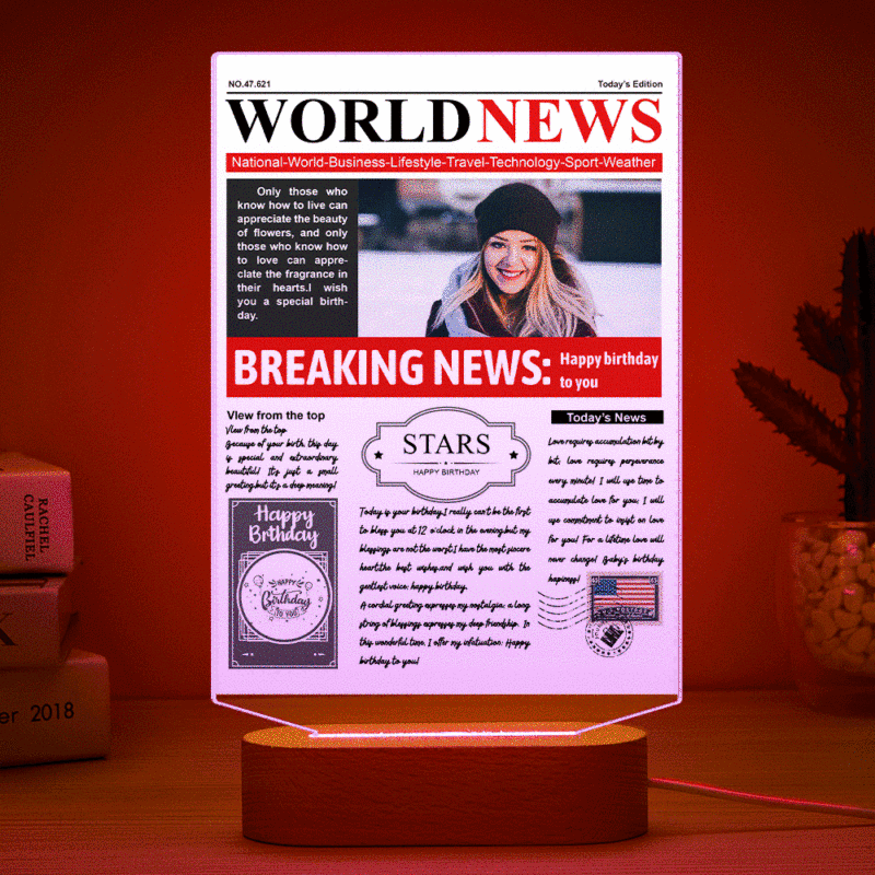 Custom Photo News Acrylic Sign Colorful Lamp Personalized 3D Printed Night Light Birthday Gifts