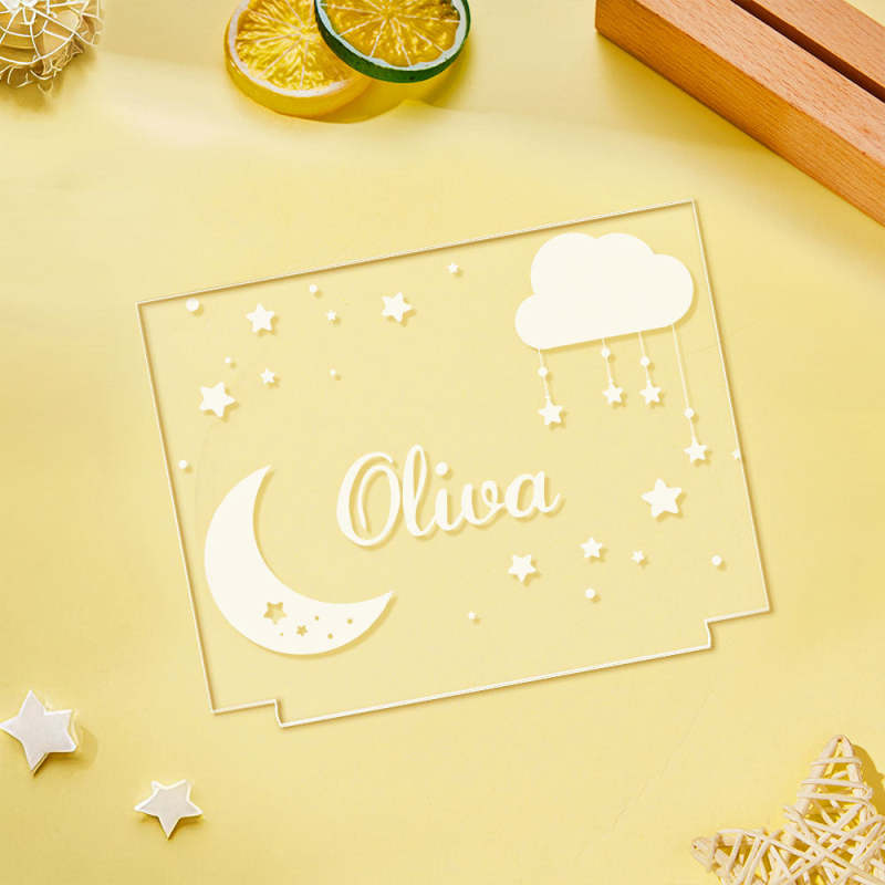 Custom Stars And Moon Name Lamp Personalized Cloud Night Light Nursery Room Gift for Kids