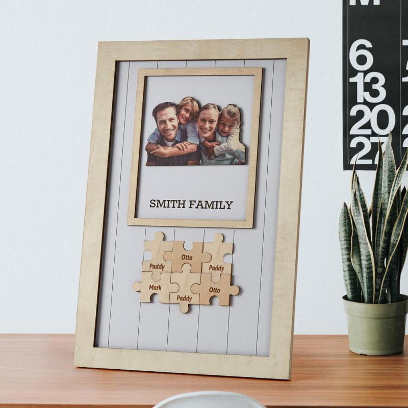 Custom Wooden Photo Puzzle Name Frame Gift for Family