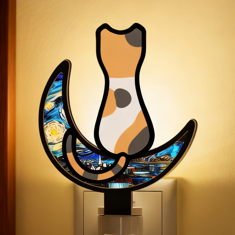 Customizable Acrylic Cat Night Light with Starry Moon Background - Plug-in LED Night Lamp for Bedroom Decor