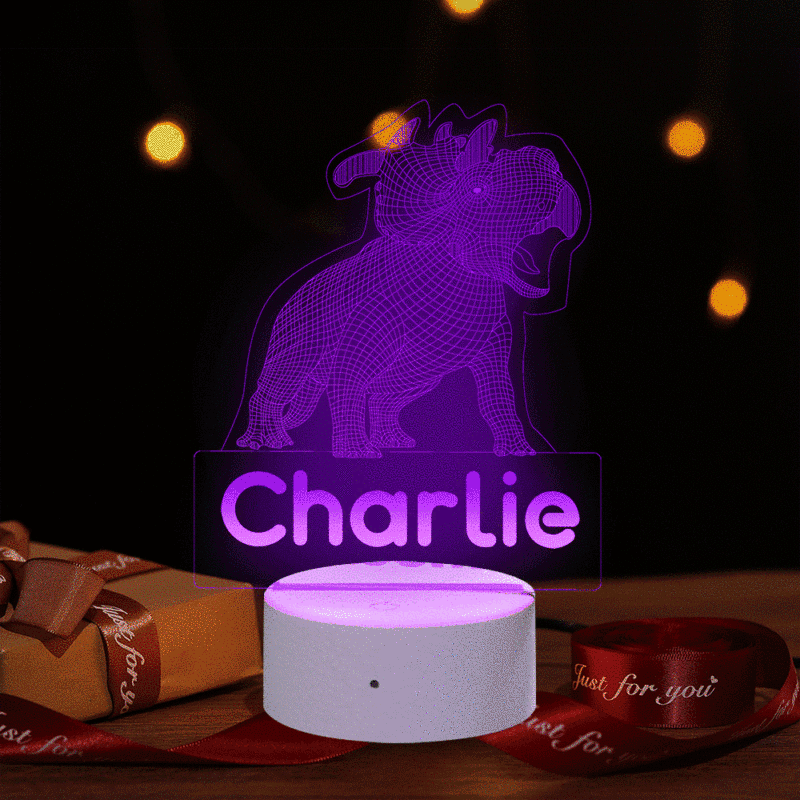 Dinosaur Personalised LED Sign Night Lamp for Kids 7 Colors Optical Illusion Lamp