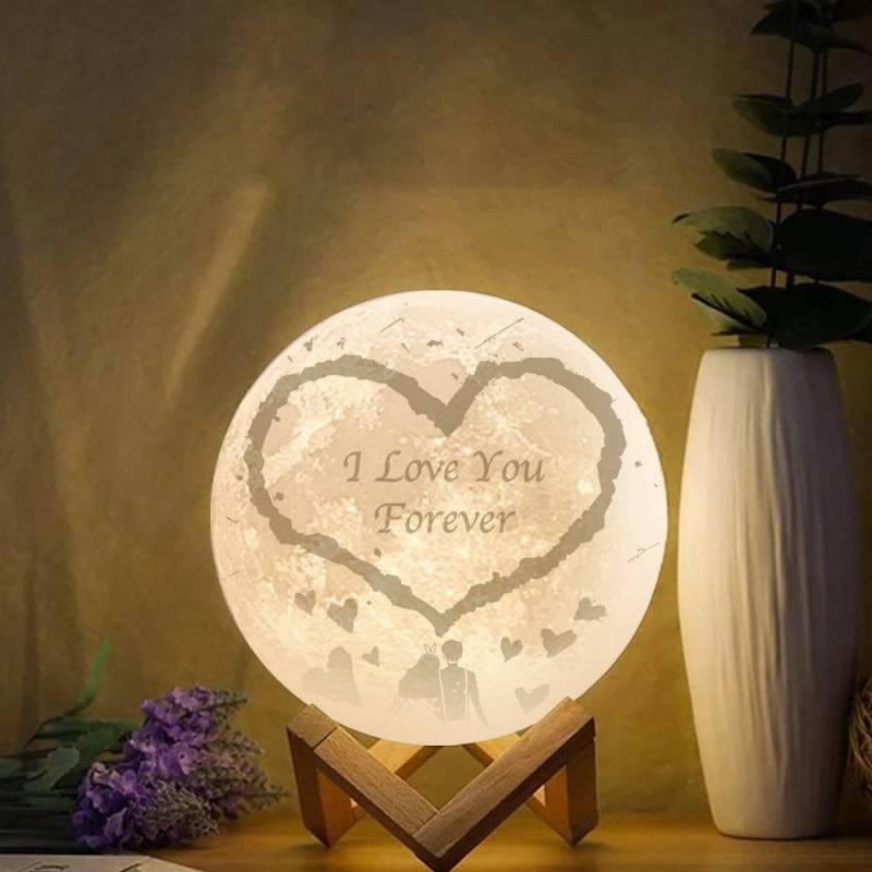 Engraved Moon Lamp, Personalised 3D Moon Lamp Keepsake Gifts - Touch Two Colors 15cm Available