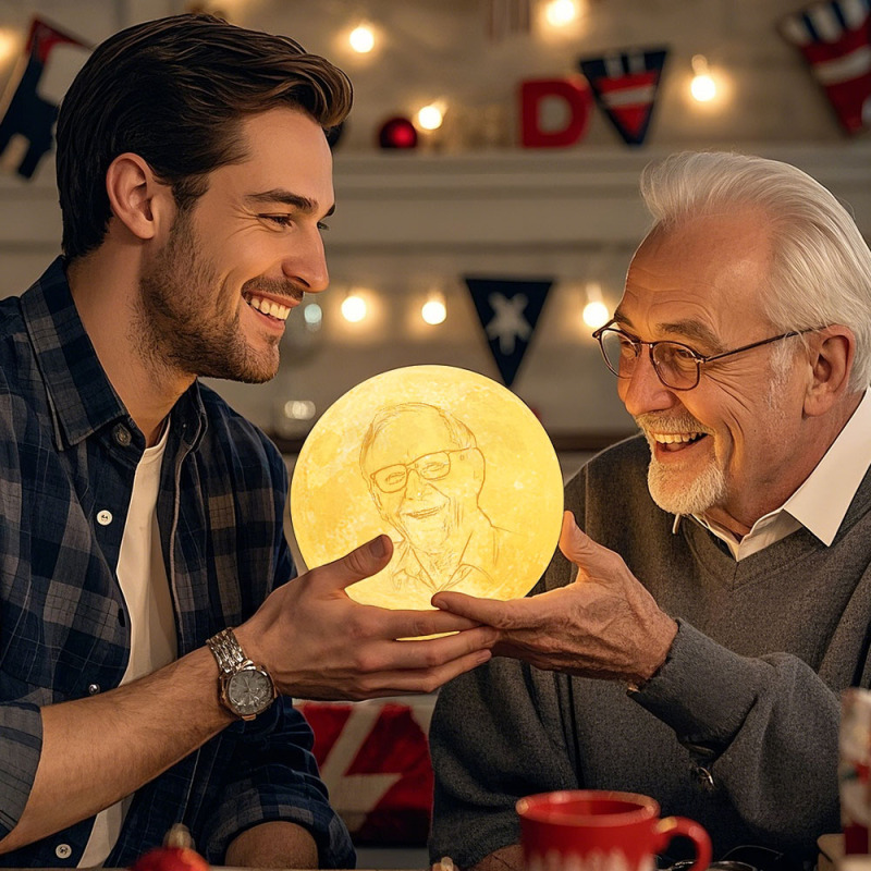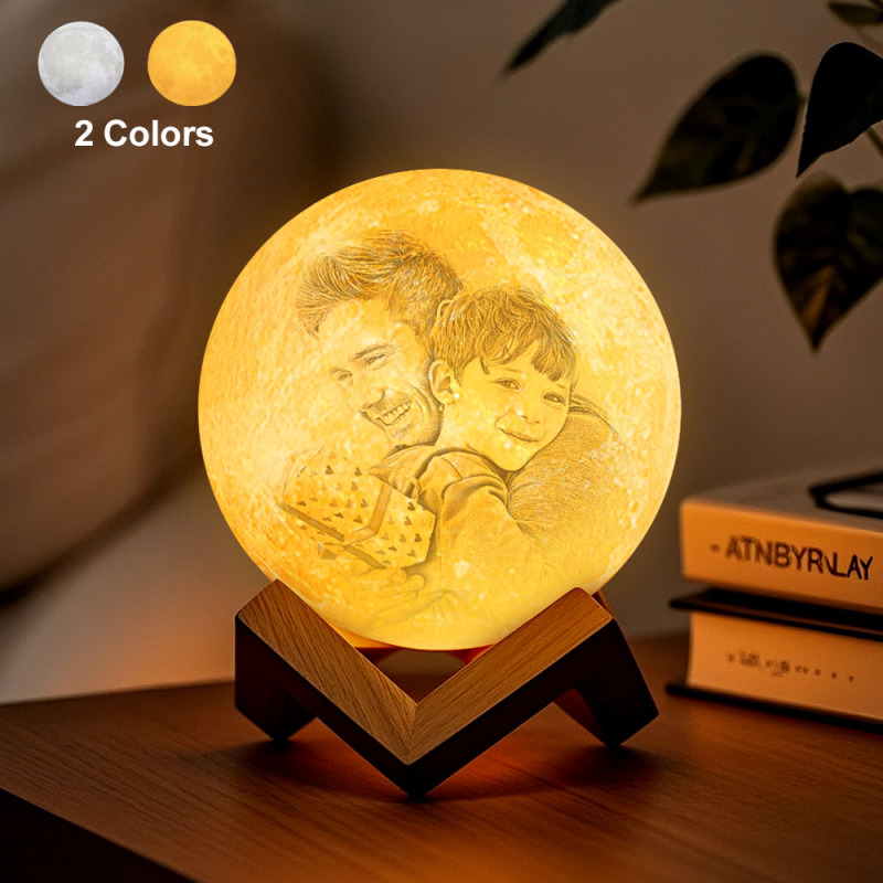 Father's Day Gift Custom Creative 3D Print and Engraved Personalized Photo Moon Lamp Gift for Father