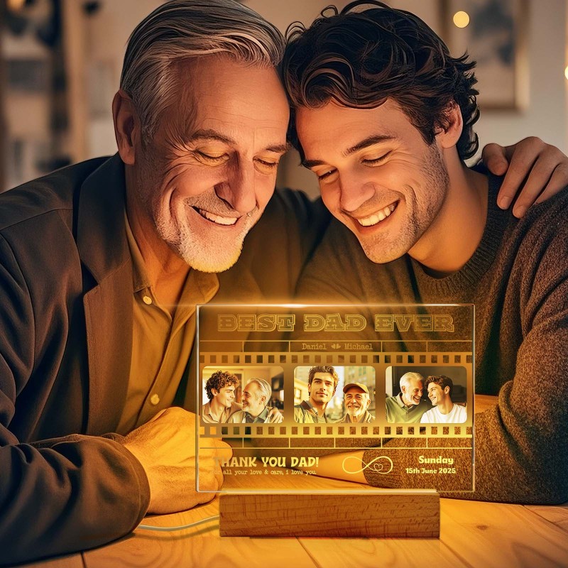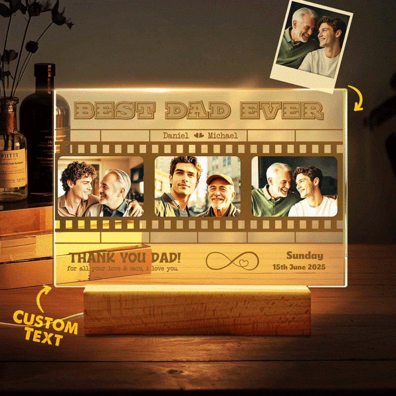 Father's Day Gift Personalized Photos and Text Night Light Best Dad Ever Gift for Dad Custom Present