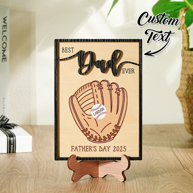 Father's Day Gift Custom Engraved Wooden Baseball Plaque Decor with Stand Personalized Memorabilia Gift For Dad