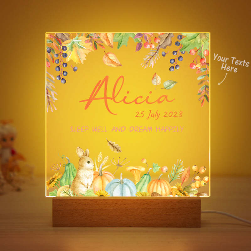 Flower And Rabbit Custom Name Nursery Room Lamp Kid Night Light Best Gift for Baby