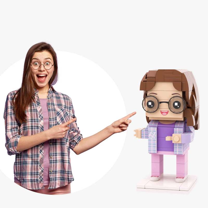 Fully Body Customizable 1 Person Custom Brick Figures Small Particle Block Toy Women's Plaid Shirt
