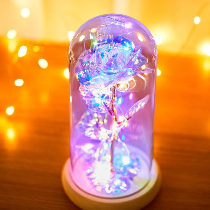 Galaxy Rose In Glass Dome with Led lights Valentine's Day Gifts