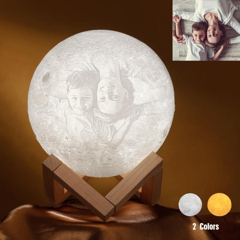 Gifts for Mom - Custom Creative 3D Print and Engraved Mother and Baby Photo Moon Lamp - Touch Two Colors