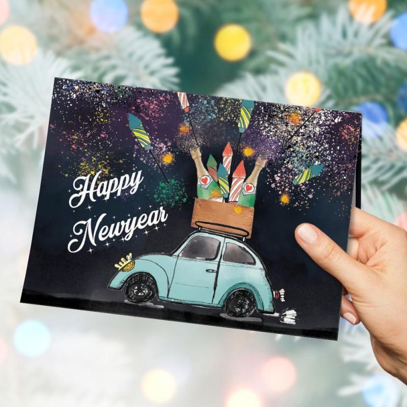 Let's Have A Ride With Champagne Happy New Year Greeting Card Gift For family And Friends