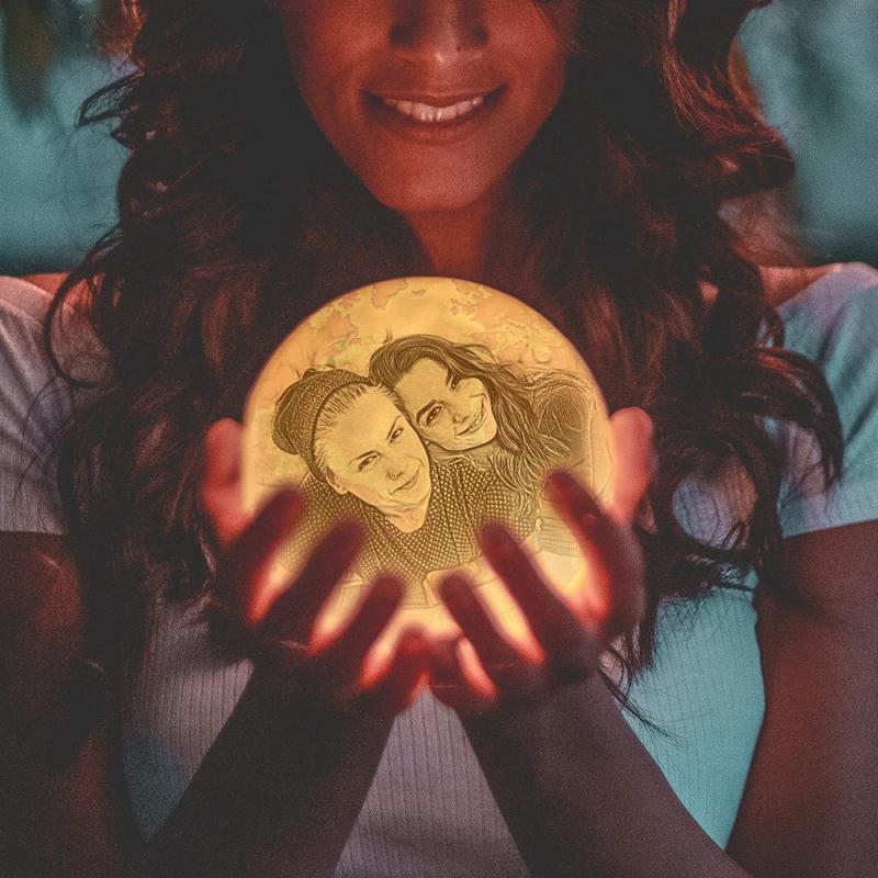 Magic Lunar Customized Earth Lamp With Text, Engraved Photo Lamp For Friend - Touch Two Colors (10-15cm)