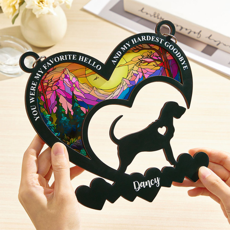 My Favorite Hello And My Hardest Goodbye - Personalized Window Hanging Suncatcher Ornament
