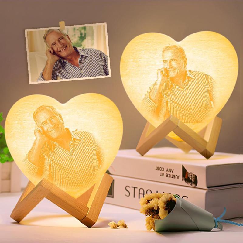 Personalised 3D Printing Photo Heart Lamp DOUBLE-SIDED Printed Night Light - Touch 3 Colors (12-15cm)