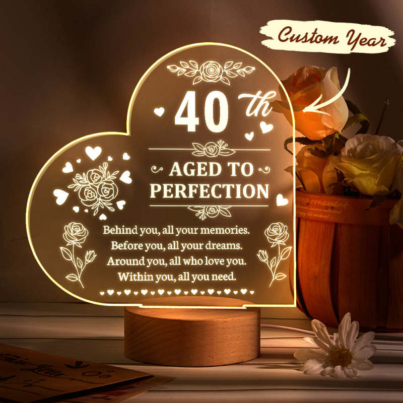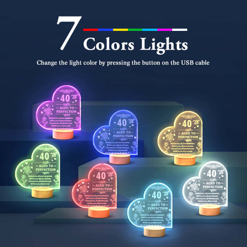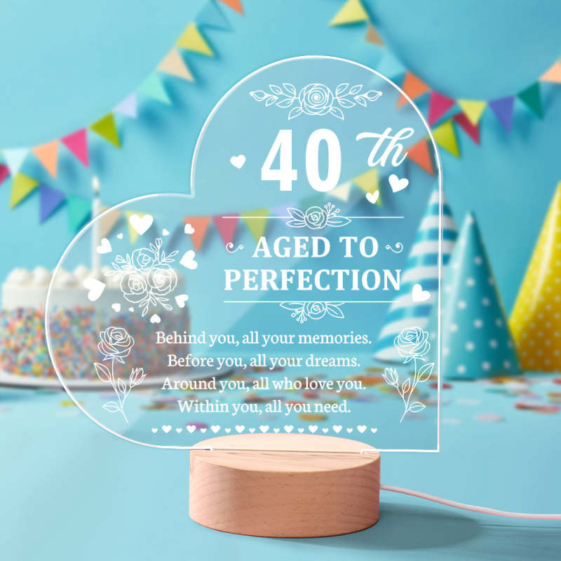 Personalised Birthday Night Light Heart Shaped Acrylic Lamp Gifts for Friends or Family