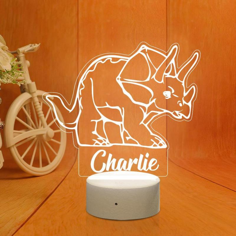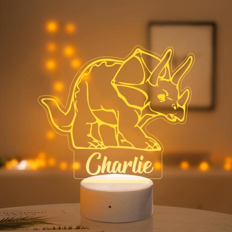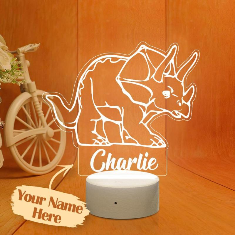 Personalised Dinosaur Night Light Kid's Bedrooms Triceratops Lamp