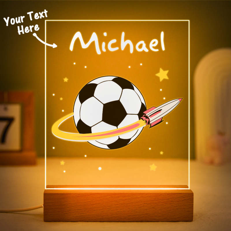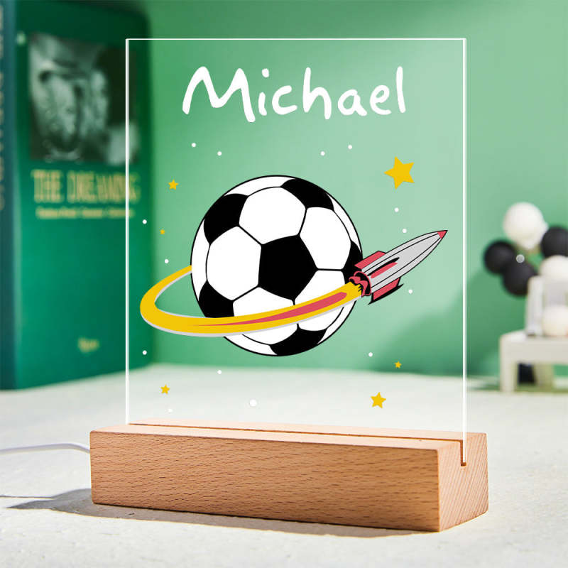 Personalised Football Night Light Your Team Boys Acrylic Led Lamp Kids Nursery Bedroom Decor