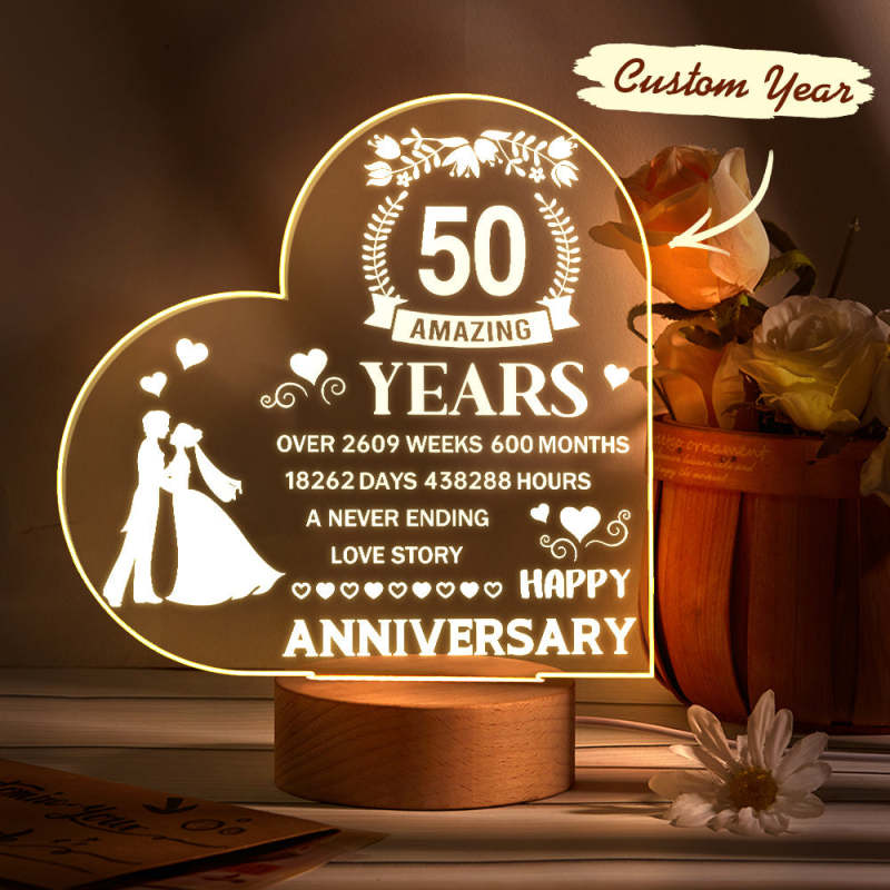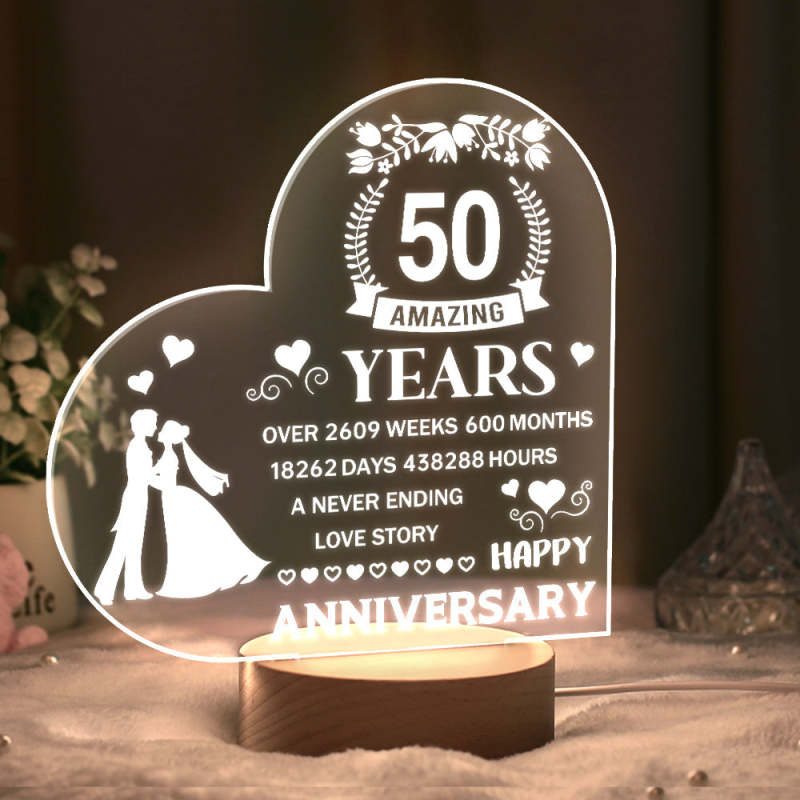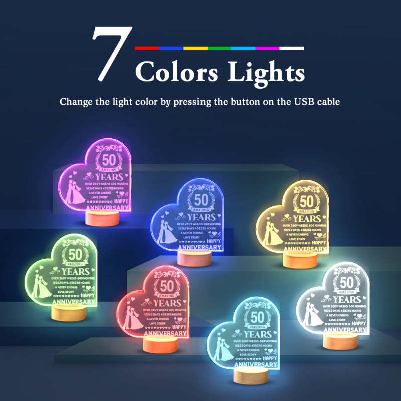 Personalised Night Light Heart Shaped Acrylic Lamp Anniversary Wedding Gifts for Him or Her