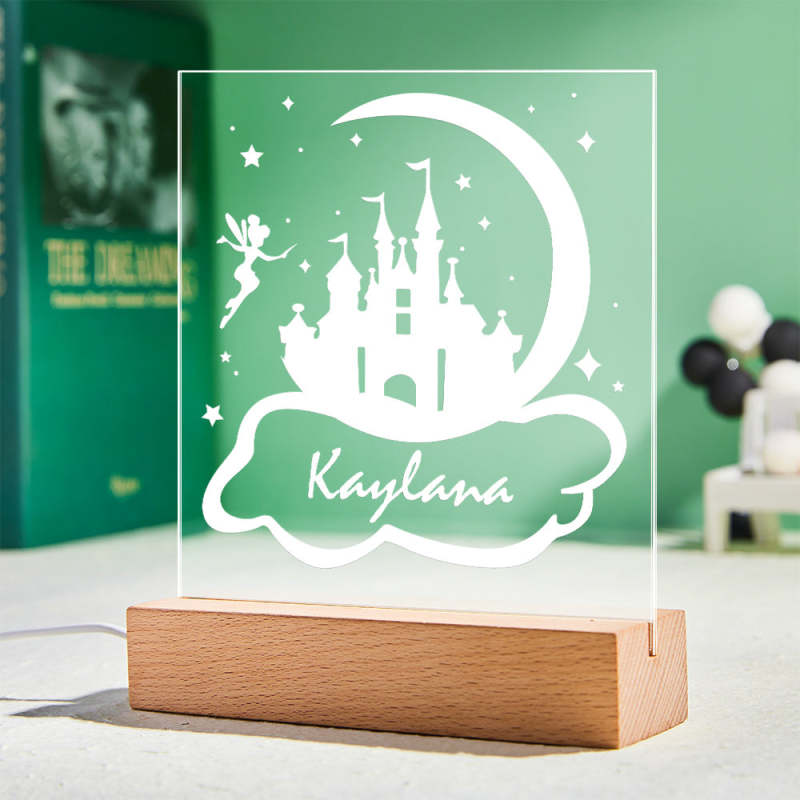 Personalised Princess Fairy Castle LED Night Light with Solid Wood Base Girl's Lamp for Bedroom