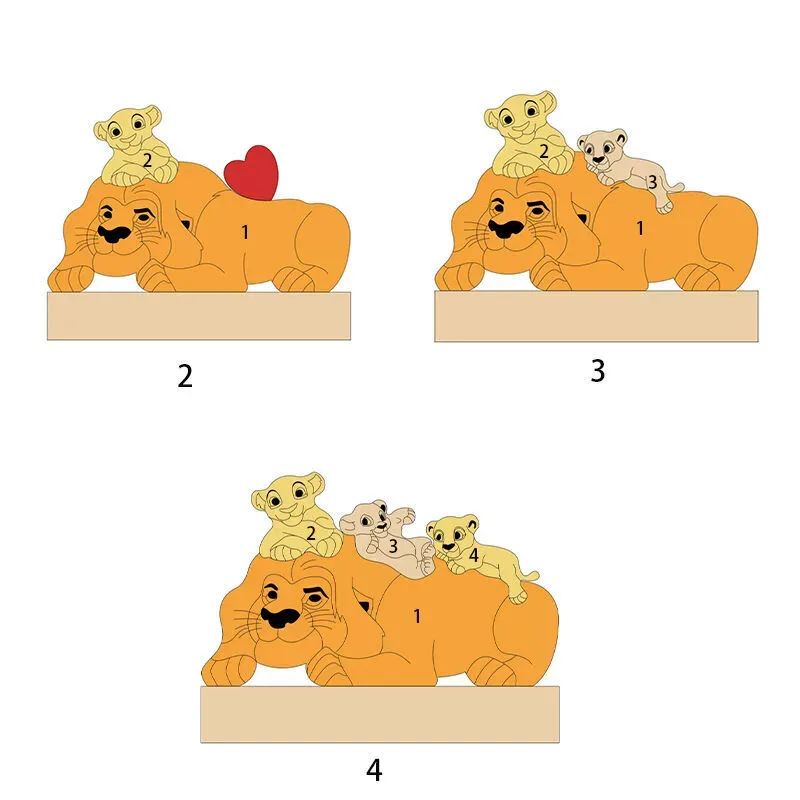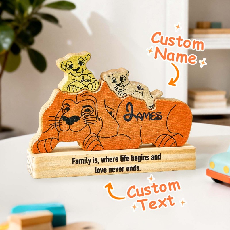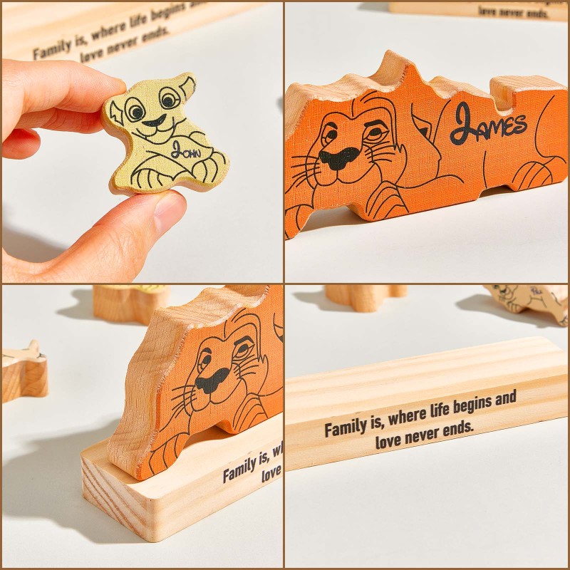 Personalised Wooden Lion Puzzle – Custom Pine Blocks with 2–4 Names