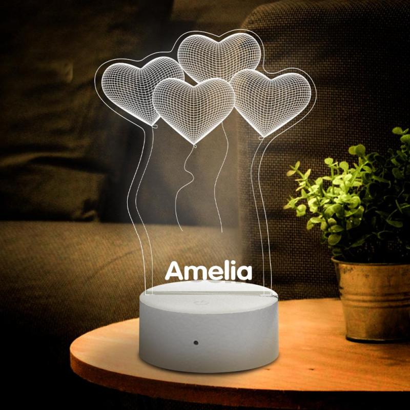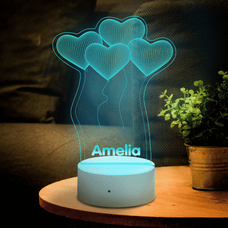 Personalised 3D Illusion Balloon of Love With Custom Name Night Light