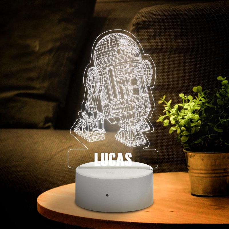 Personalised 3D Illusion Star Wars R2D2 With Custom Name Night Light