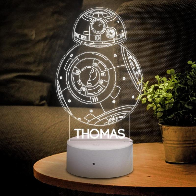Personalised 3D Illusion Star Wars Robot BB-8 With Custom Name Night Light
