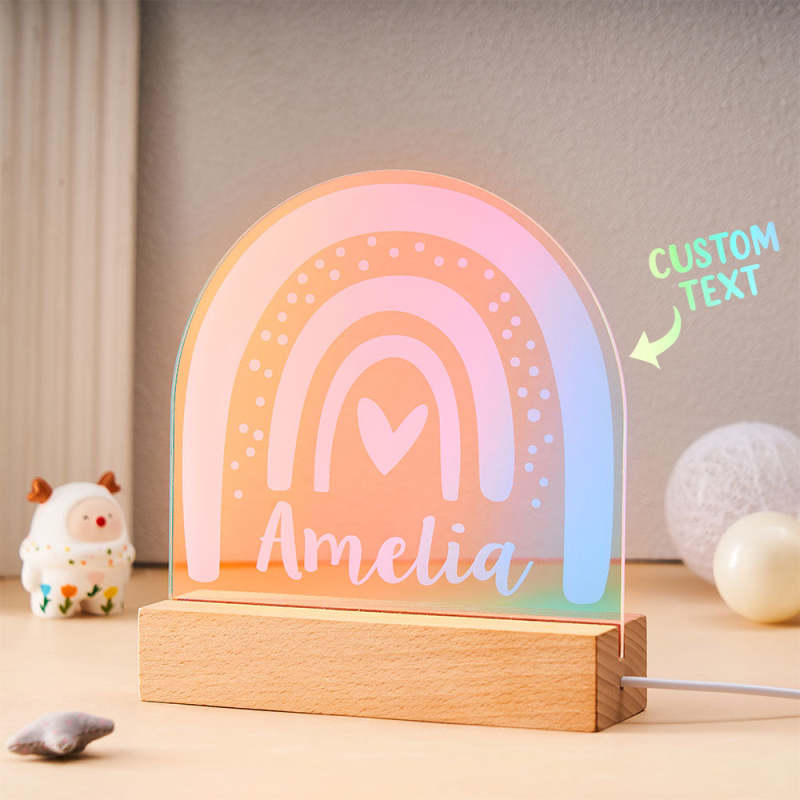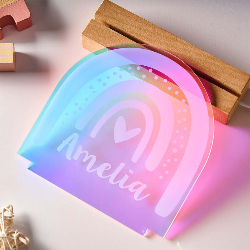Personalised Engraved Rainbow Shape Colorful Laser Lamp Lovely Transparent Gradient Color Ornaments For Children