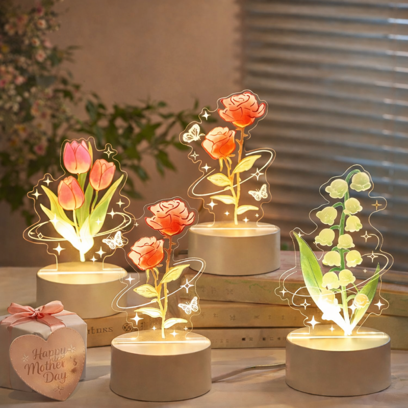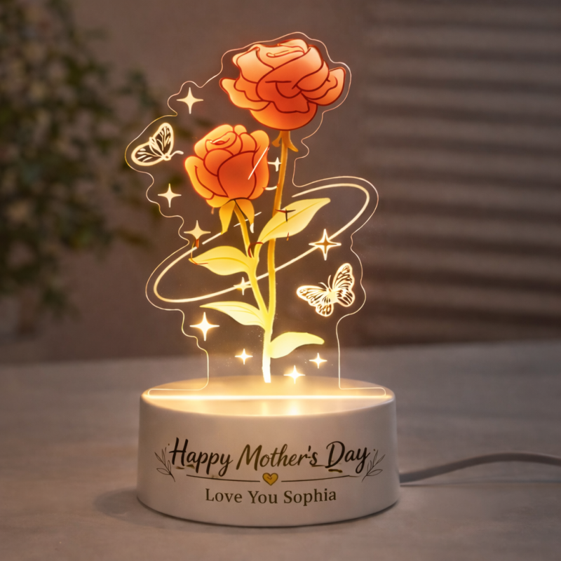 Personalized Eternal Rose Tulip Lily of the Valley LED Night Light – Mother’s Day Custom Flower Lamp Gift for Mom