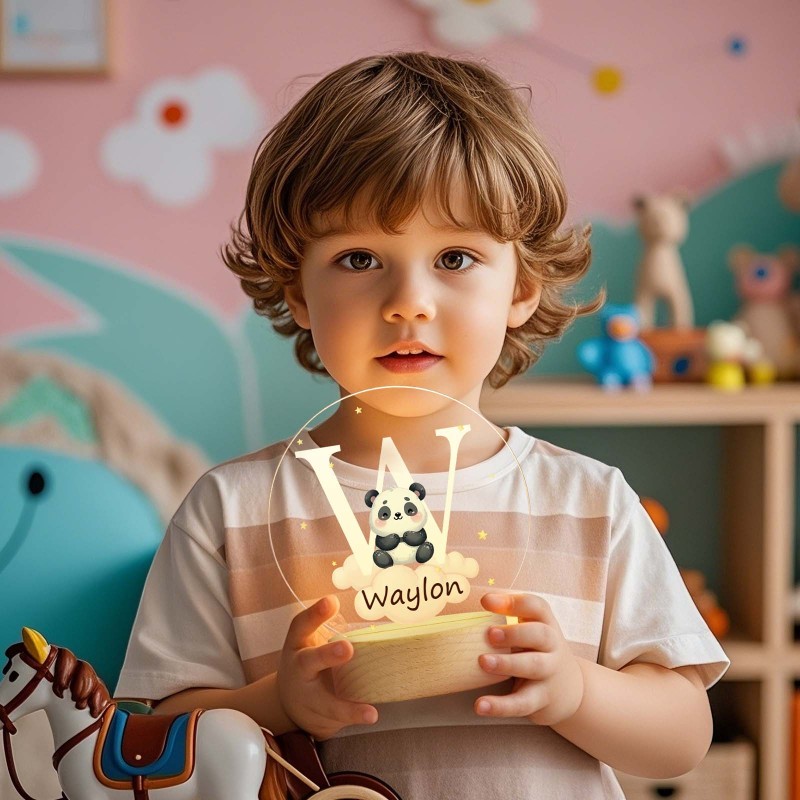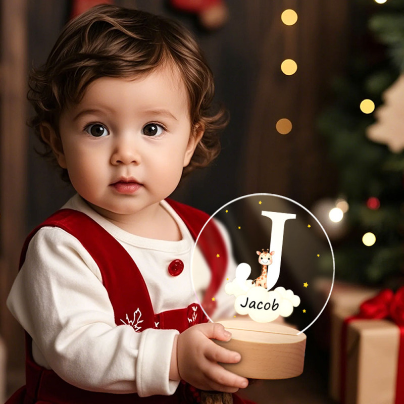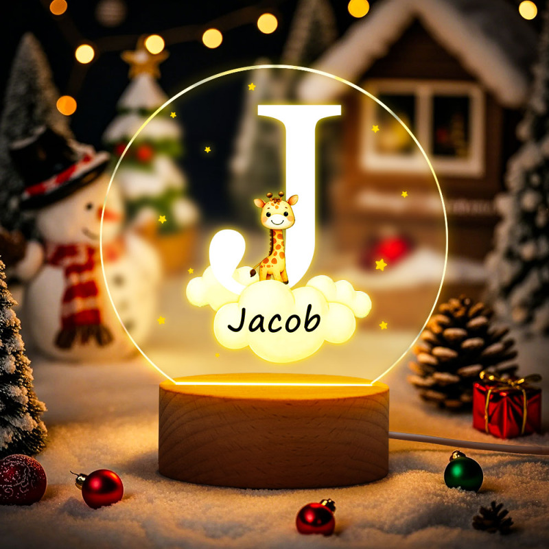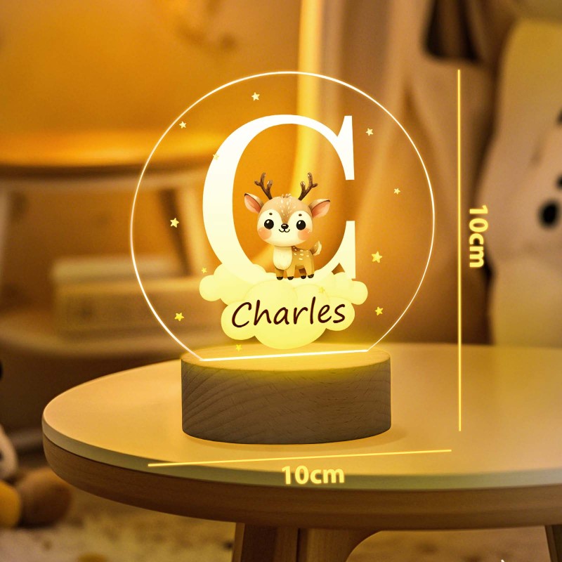 Personalized Fantasy Star Cloud Cute Forest Animal Initial Name LED Night Light with Wooden Base Nursery Decor Birthday Baby Shower Gift for Kids