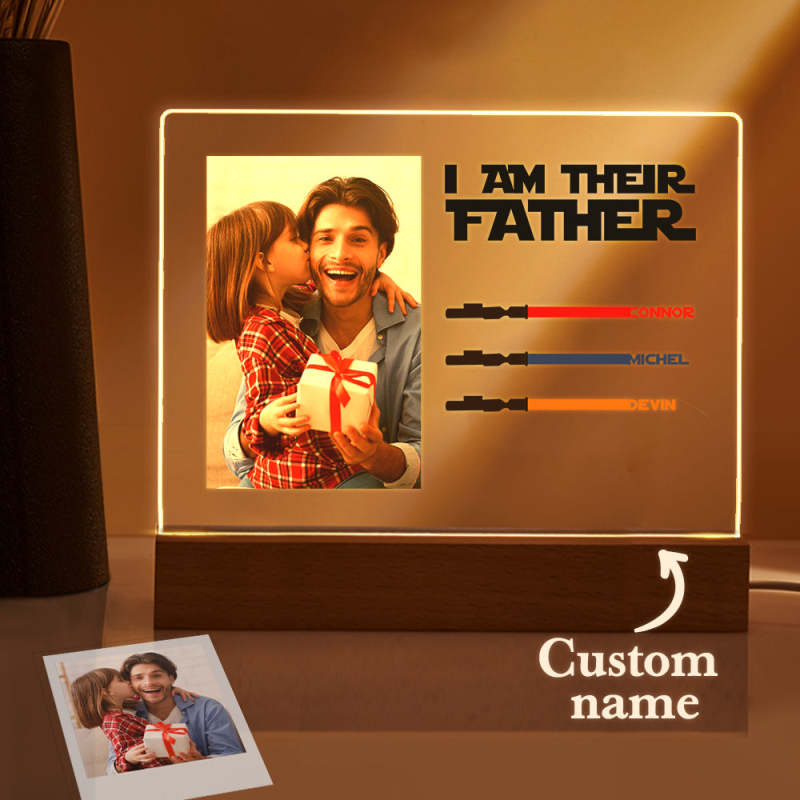 Personalized I Am Their Father Night Light Photo Acrylic Light Saber Plaque Father's Day Gifts