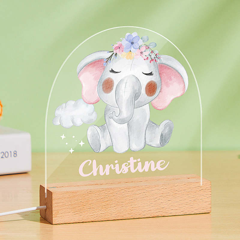 Personalized LED Night Light with Small Lovely Elephant for Baby Gifts Nursery Decor