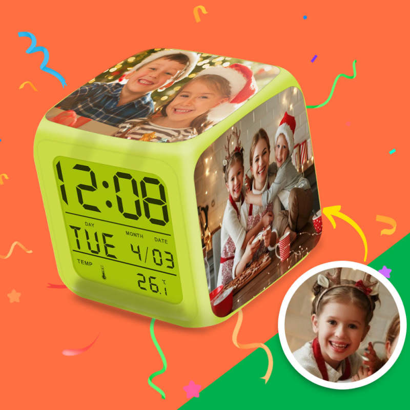 Personalised Multiphoto Alarm Clock Home Decoration Multiphoto Colorful Lights Gifts