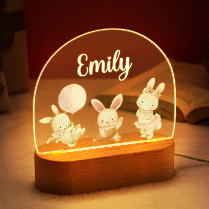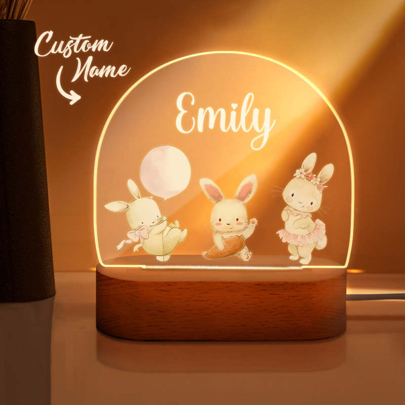 Personalized Name Cute Rabbit Night Light Custom Name Nursery Room Lamp Gift For Kids