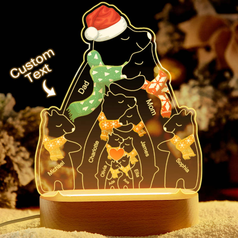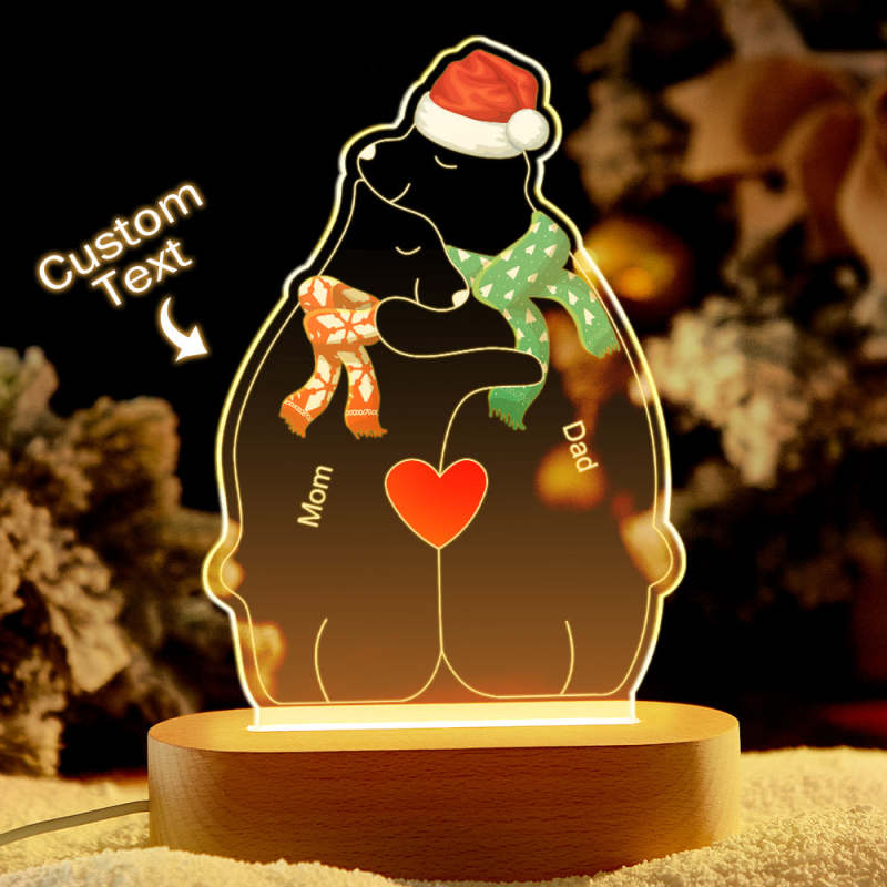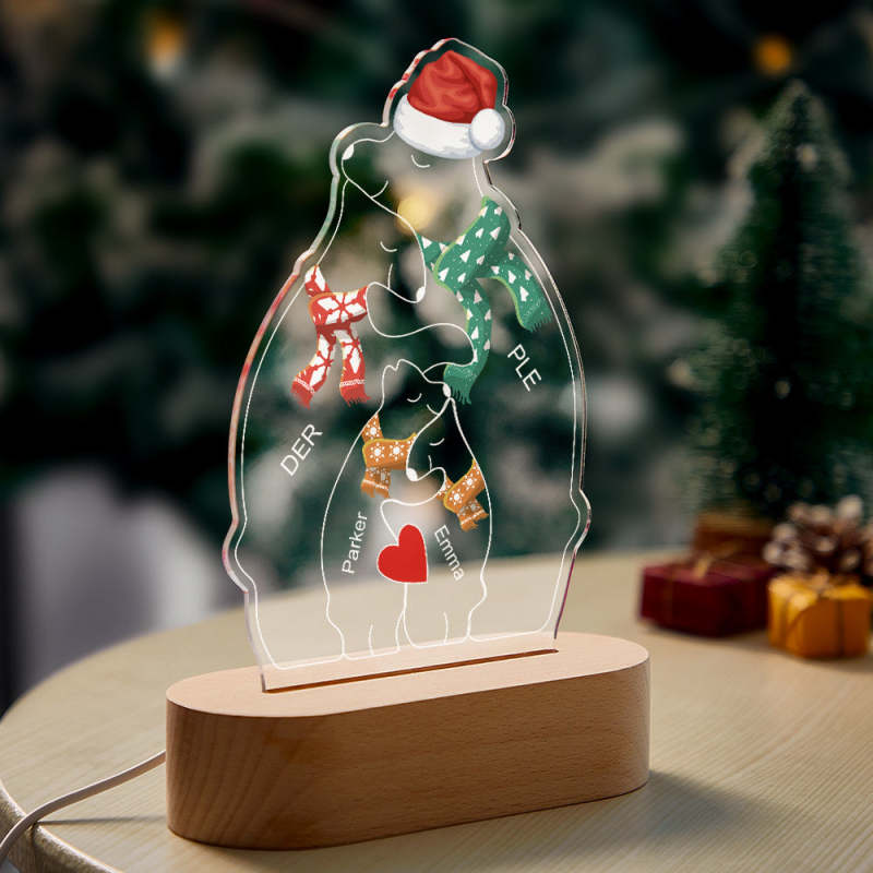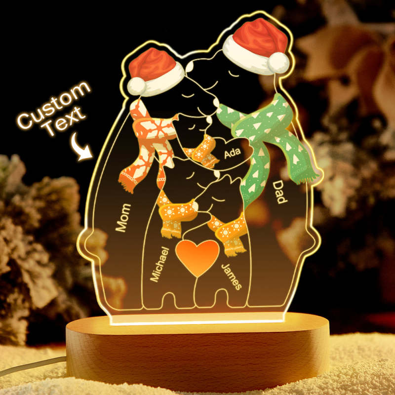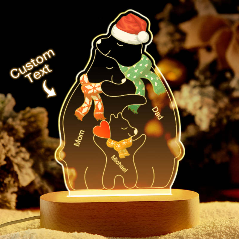 Personalised Names Christmas Warm Bear Family Acrylic Lamp Custom Night Light Best Christmas Gift