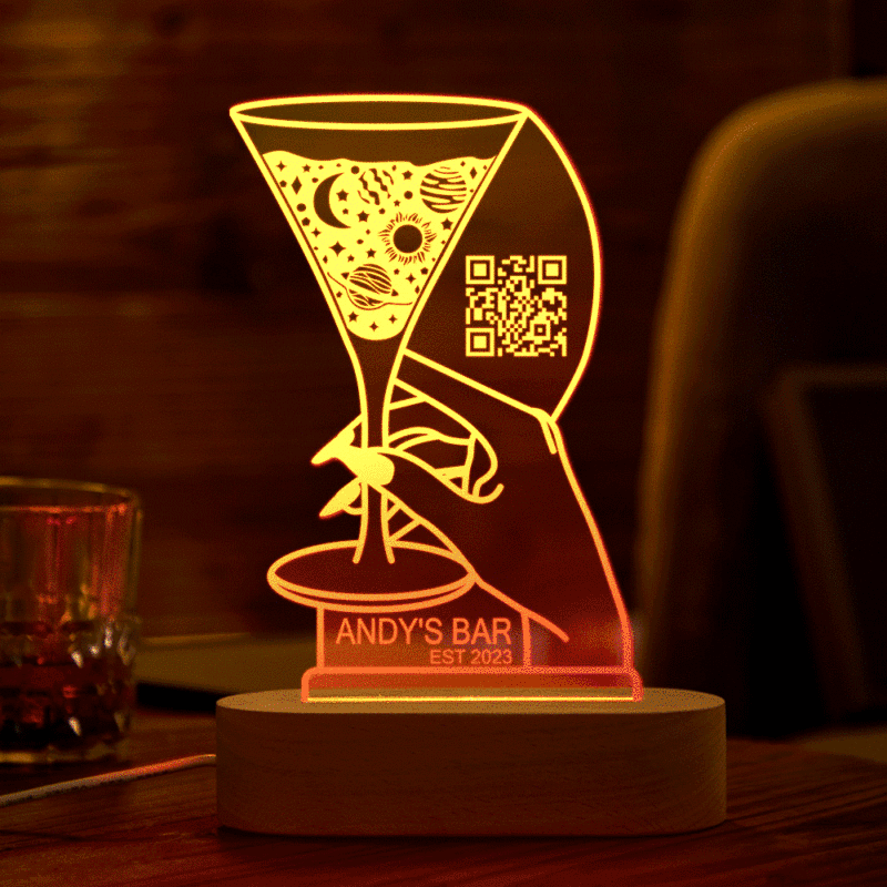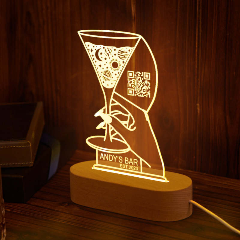 Personalized Qr Code Cocktail Night Light 7 Colors Acrylic 3D Lamp Father's Day Gifts