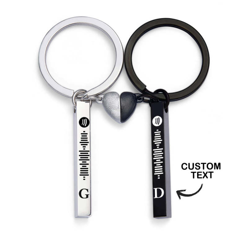 Set Magnet Heart Cute Custom Initial Keychain Spotify Music Keychain for Couple