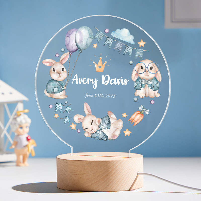 The Best Birthday Gifts For Baby Personalized Cute Crown Rabbit Night Light Custom name Flags And Balloon Table Light