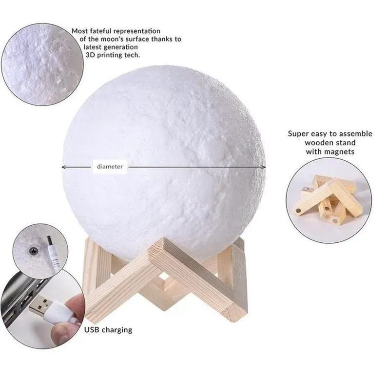 Two Colors Magic Lunar Customized Earth Lamp With Text, Engraved Photo Lamp Christmas Gift for Family Members (10-15cm)