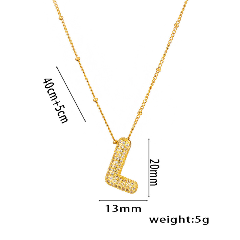 Valentine's Day Gift Sparkling Cubic Zirconia Letter Necklace Bubble Letter Initial Necklace Gift for Her