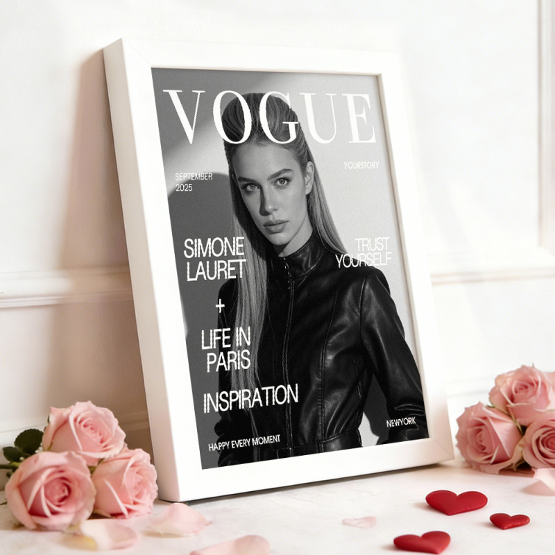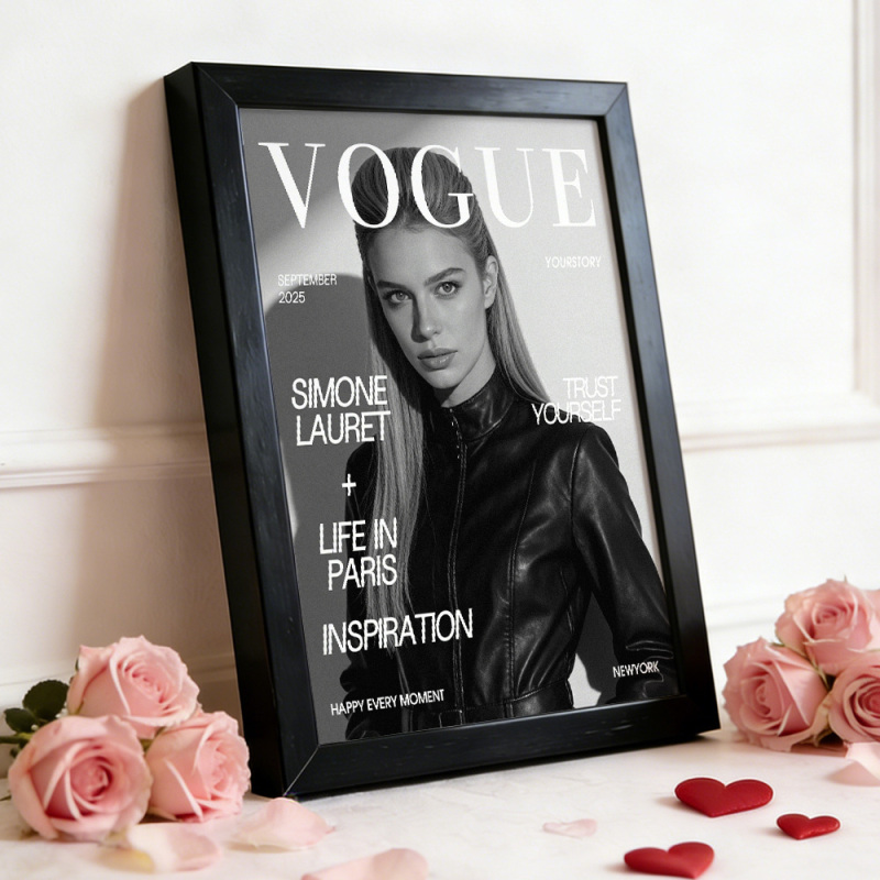 Valentine's Day Gift Custom Vogue Magazine Frame Personalized Photo & Text Decor Gift for Birthdays Anniversary
