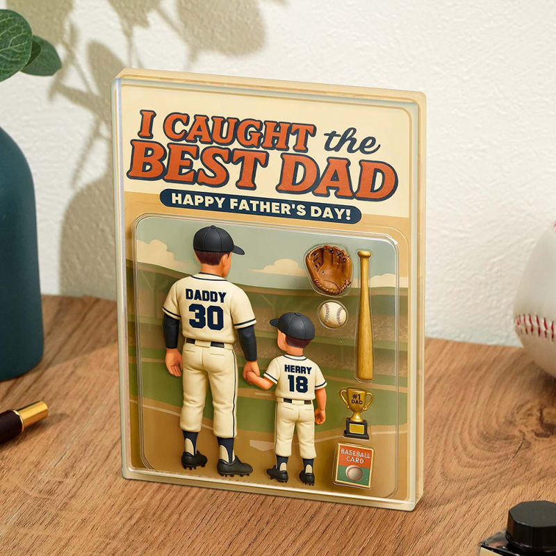 We Caught the Best Dad Baseball Custom Figure Personalized Acrylic Block Plaque, Personalized Father's Day Gift for Dad, Gifts for Husband